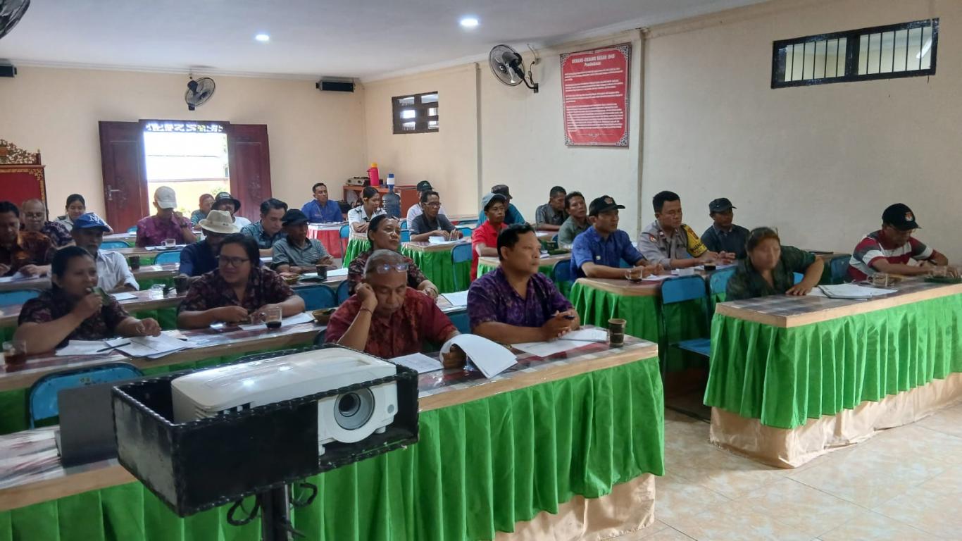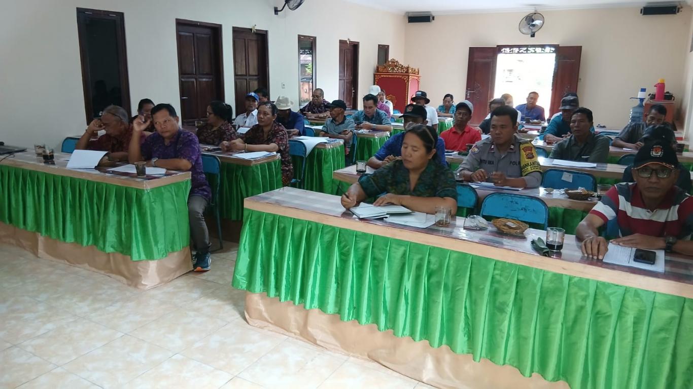 Kegiatan Musyawarah ini dipimpin langsung oleh Ketua BPD, Perbekel Desa Menyali beserta Perangkat Desa, Kelian Desa Adat Menyali, Ketua TP. PKK, Kelian-kelian kelompok, Ketua LPM, Kelian Subak, PLKB Menyali, Tokoh Masyarakat.